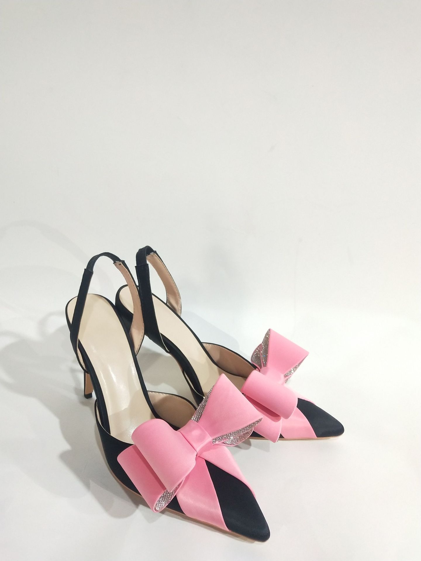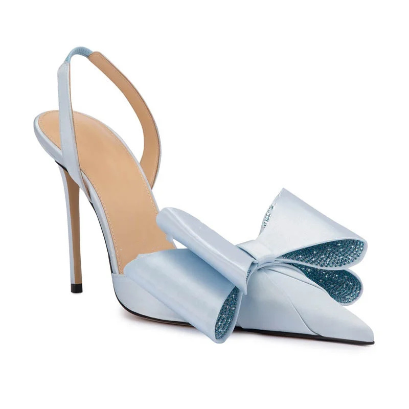 Yyvonne Yyvonne New Pointed Thin Heel Ultra High Heel Bow Rhinestone Head Large Size Hollow Rear Empty Sandals Woman