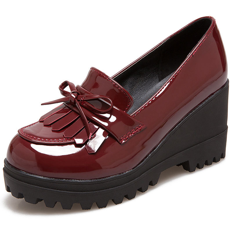 Yyvonne Yyvonne New Small Size 33 High Heel Tassel Slope Heel 40-43 Large Size Casual Women's Singles Shoes A8-10