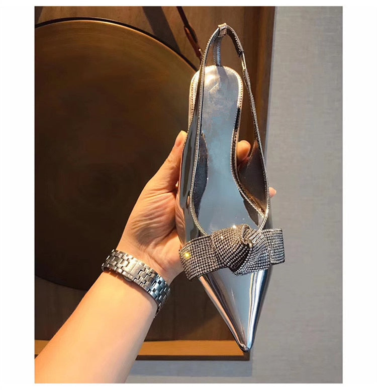 2020 Brand Slingback Women Pumps Luxury Rhinestones Butterfly Party Wedding Shoes Elegant  High heels Summer Prom Shoes Sandals