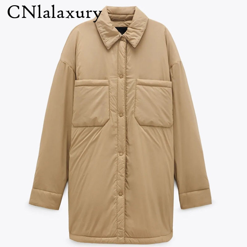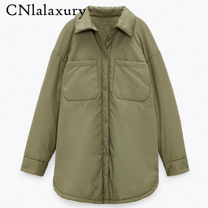 2020 New Autumn Winter Warm Cotton Jacket Coat Women Vintage Khaki Long Outwear Female Oversize Solid Overcoats Loose Parkas Top