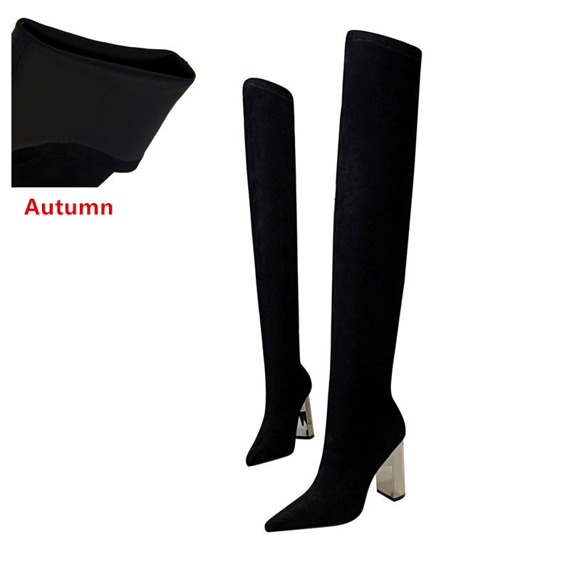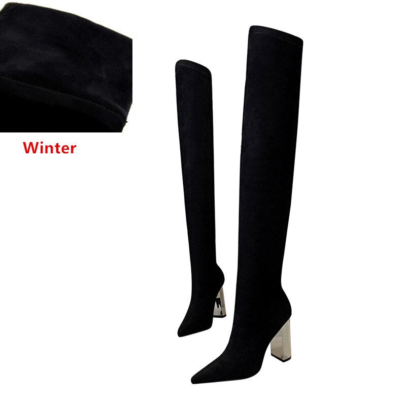2020 Women over the knee Boots Slip on Autumn Winter Shoes Thick heeled Elastic Suede Thigh high boots High heels Warm Long boot