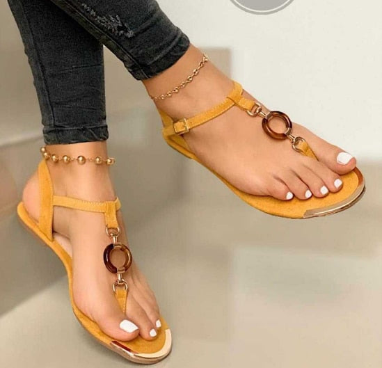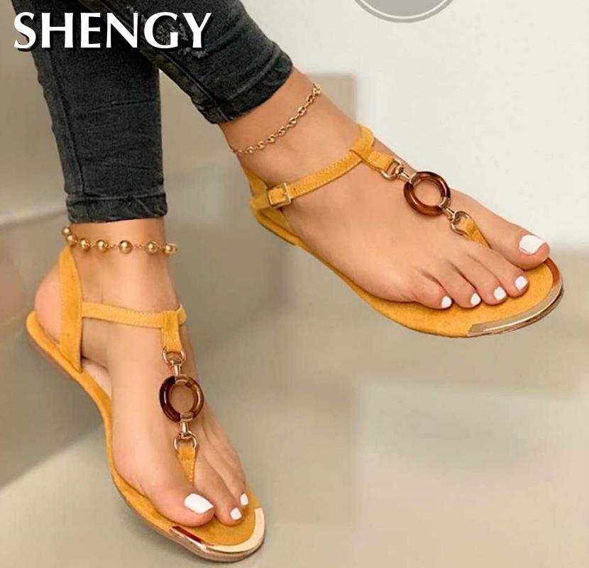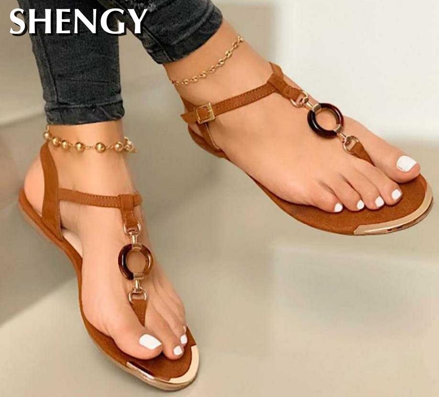 2020 Women Summer Shoes Fashion Flat Heel Clip Toe Feet Roman Buckle Large Size Female Sandals Comfortable Sandalias Mujer