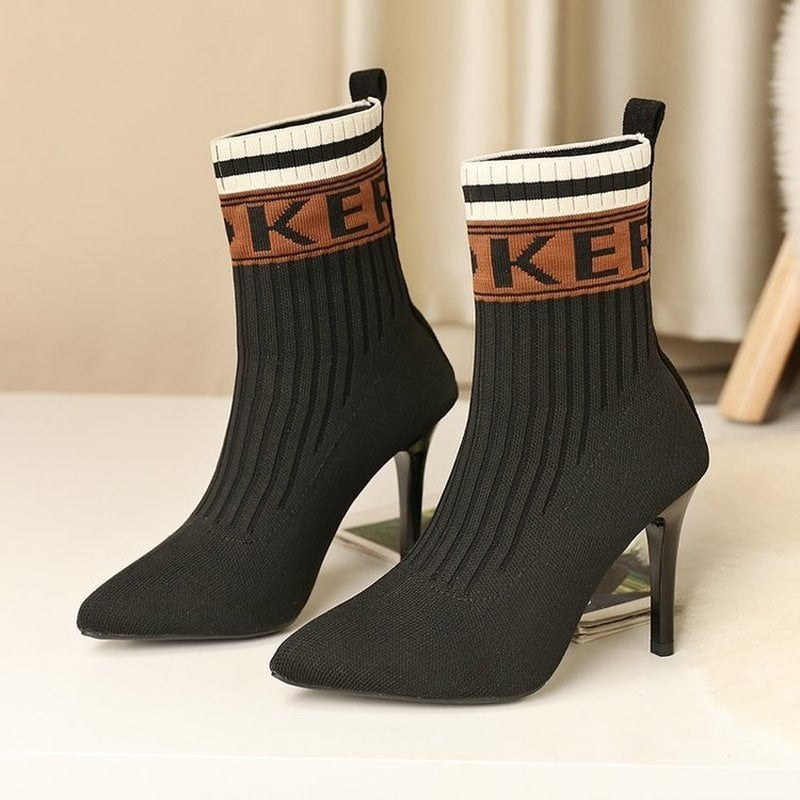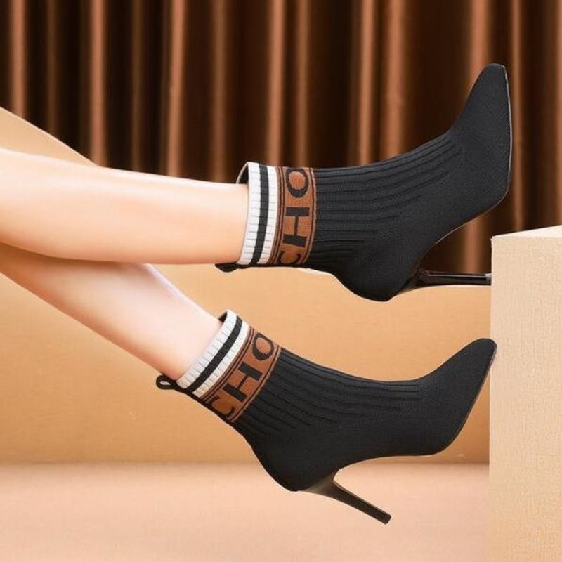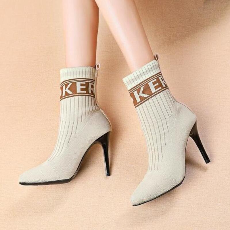 2021 Autumn Knitting Women's Boots Winter Shoes for Women Fashion High Heels Booties Woman Thin Heels Ankle Boots Martin Boots