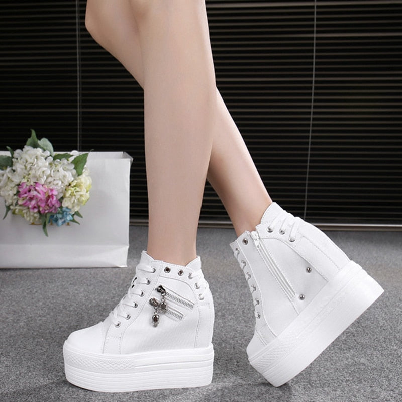 2021 Autumn Women Casual Shoes Denim Ankle Boots Ladies Classic Zipper Height Increasing student Boots Zapatos De Mujer
