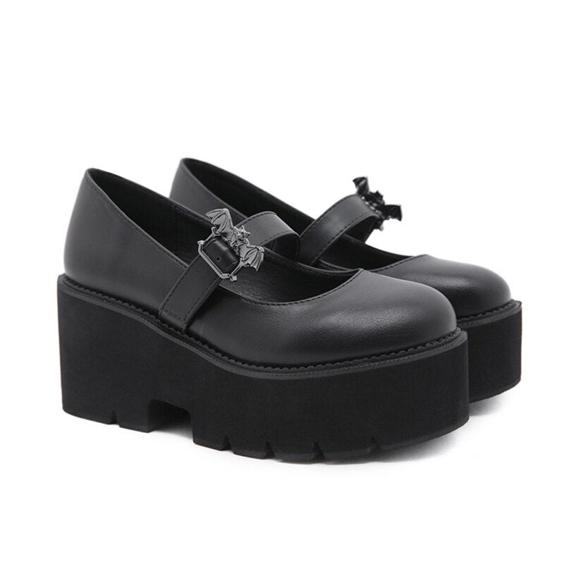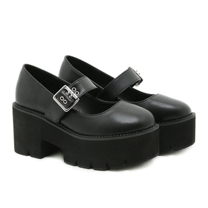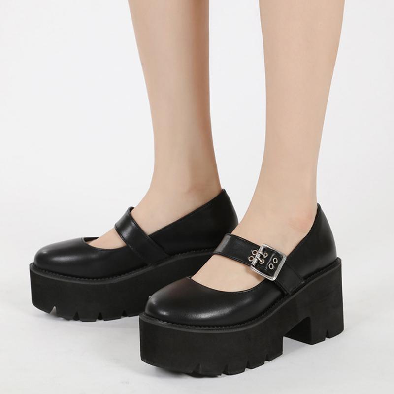 2021 Leather Sweet Women Platform Mary Jane Shoes Solid Color Casual Females Pumps Wedges Buckle Chunky Shoes for Ladies