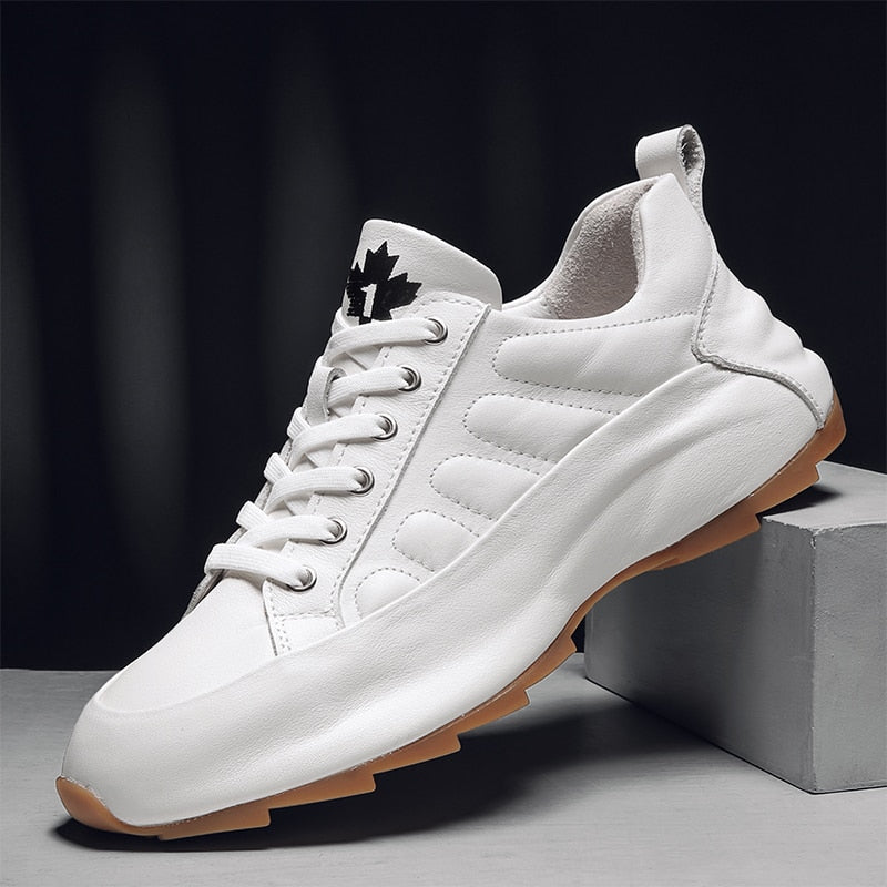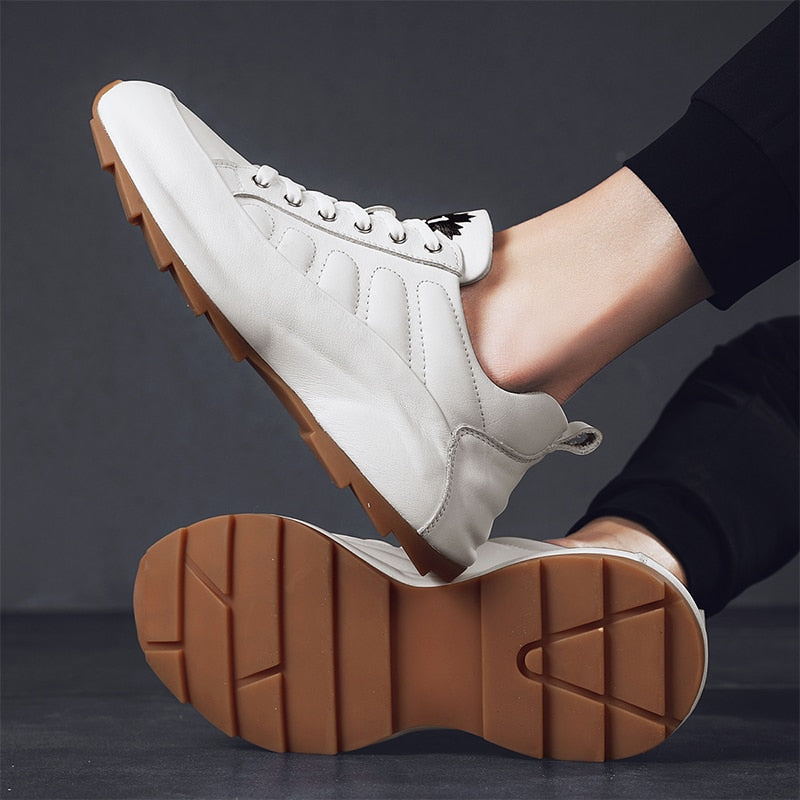 2021 New Men's Casual Shoes Fashion White 100% Genuine Leather Shoes for Men Shoe Lift Cowhide Cushioning Walking Footwear