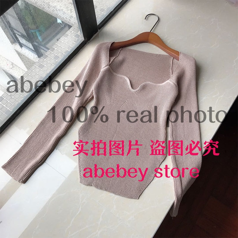 2021 new spring and summer fashion women clothes sqaure collar full sleeves elastic high waist sexy pullover WK080