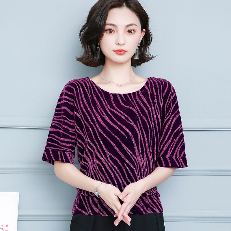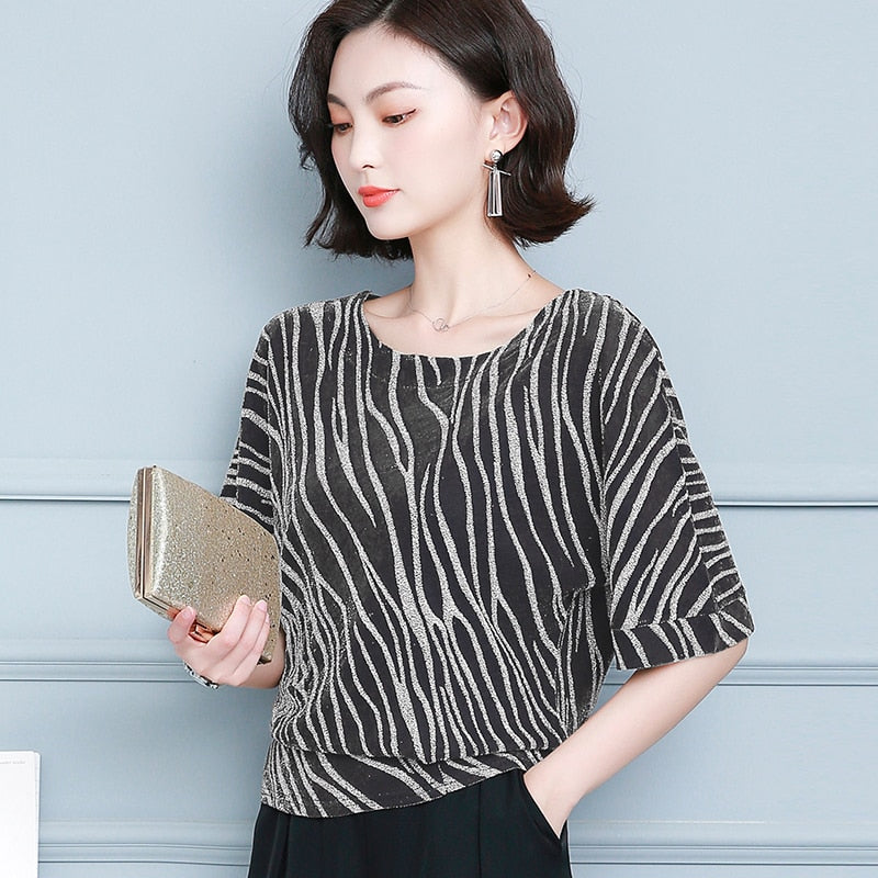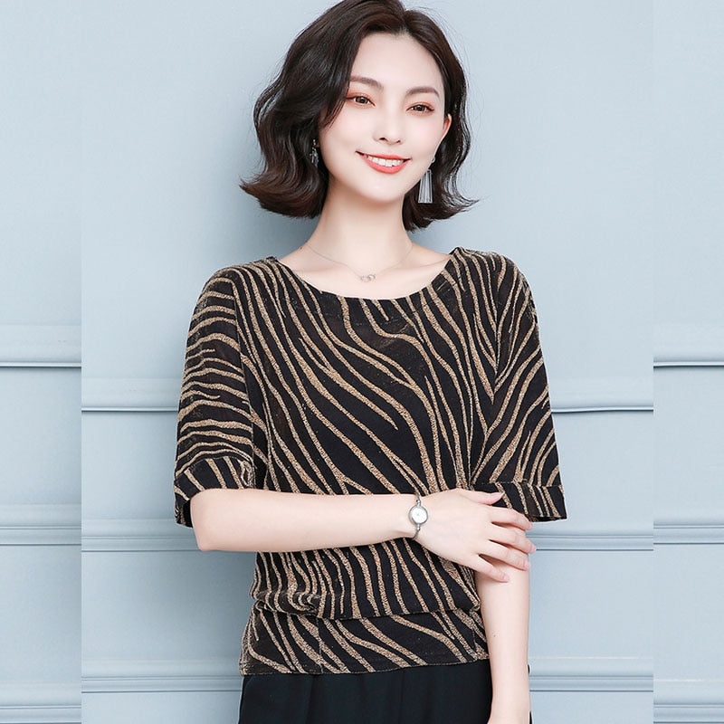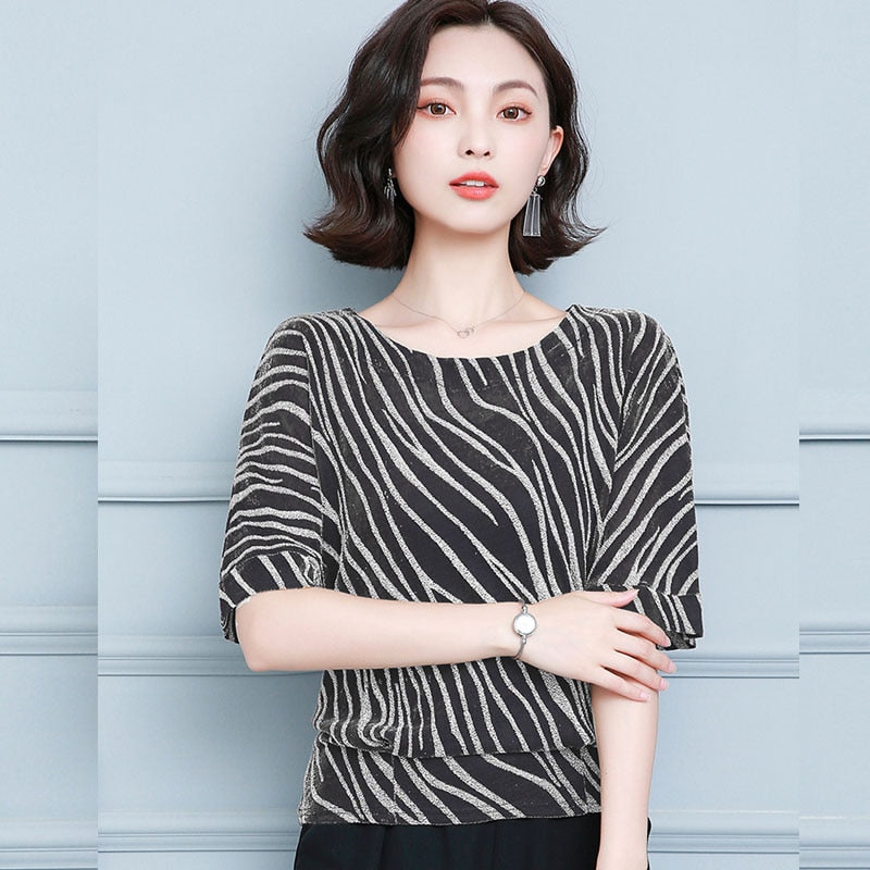 2021 Spring and Summer New Women's Striped Office Lady Style Short Sleeve Blouse Plus Size 4XL Women Base Shirt Blusas 10365