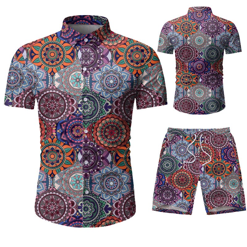 2021 Summer New Fashion European Size Men's Casual Suit Floral Shirt Shorts Set Men Plus Size Clothing for Men 3xl