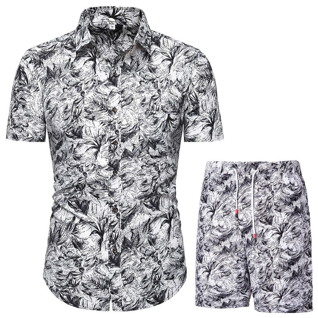 2021 Summer New Men's Casual Suit Korean Slim Short Sleeve Shirt Shorts Mens Beach Suit 2 Piece Set