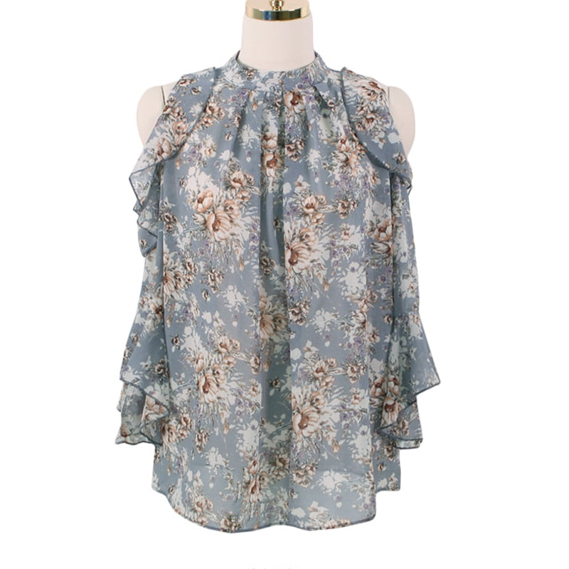 2021 Summer New Off-Shoulder Pullover Floral Loose Blouse Women Short Sleeve OL Chiffon Shirt Women Blusas Mujer De Moda 9930