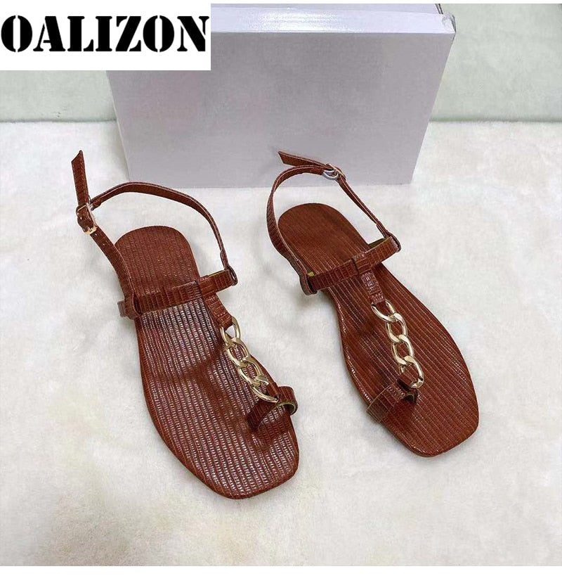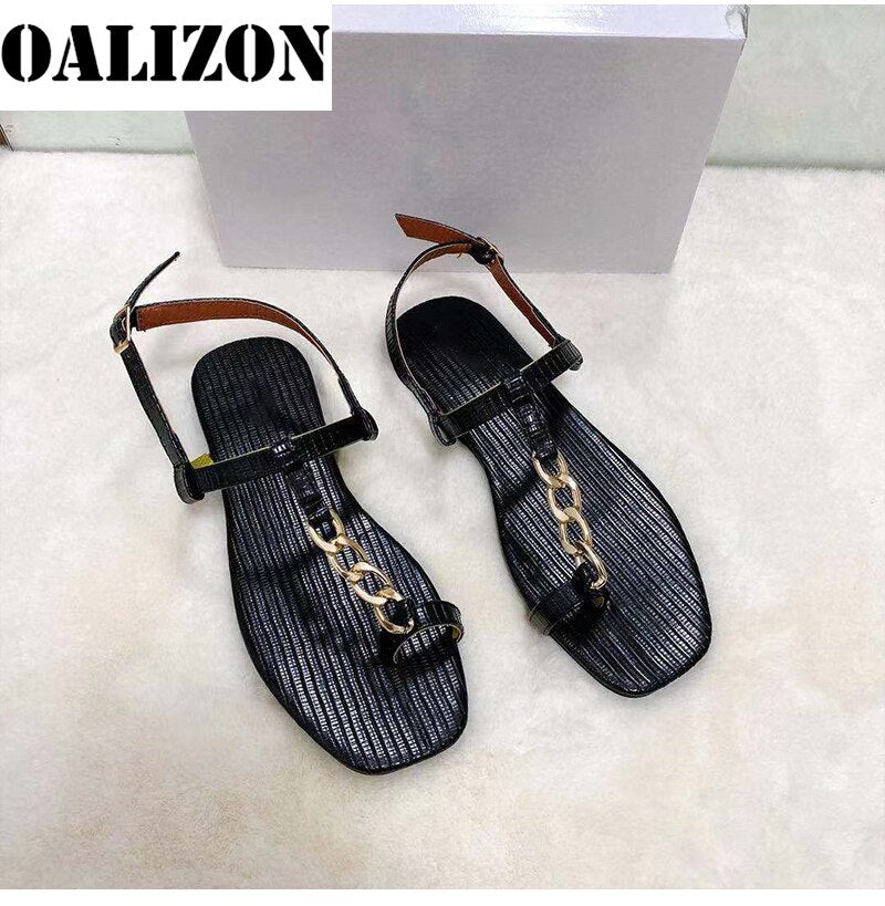 2021 Summer New Women's Chain Flip Flops Thong Sandals Shoes Woman Casual Buckle Strap Flat Slip On Toe Clip Sandals Shoes Femme