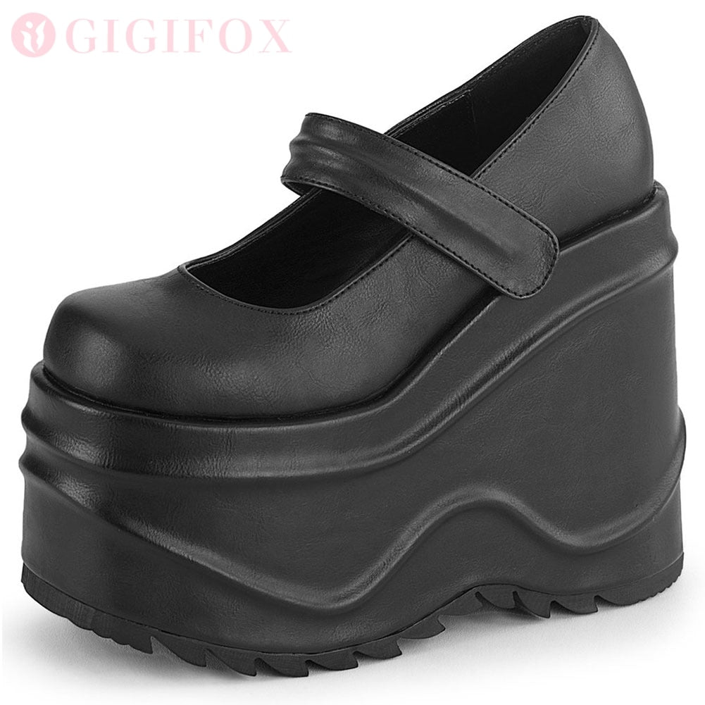 2021 Sweet Lovely Gothic Style Lolita Mary Jane Cosplay Black Pink Comfy Walking Platform Shoes Women Wedges Footwear High Heels