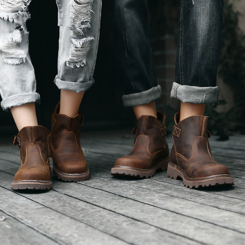 2021 Winter Autumn Brown Genuine Leather Comfy Men Shoes Fashion Mens Boots Man New Fashion Design Outdoor Women Casual Boots