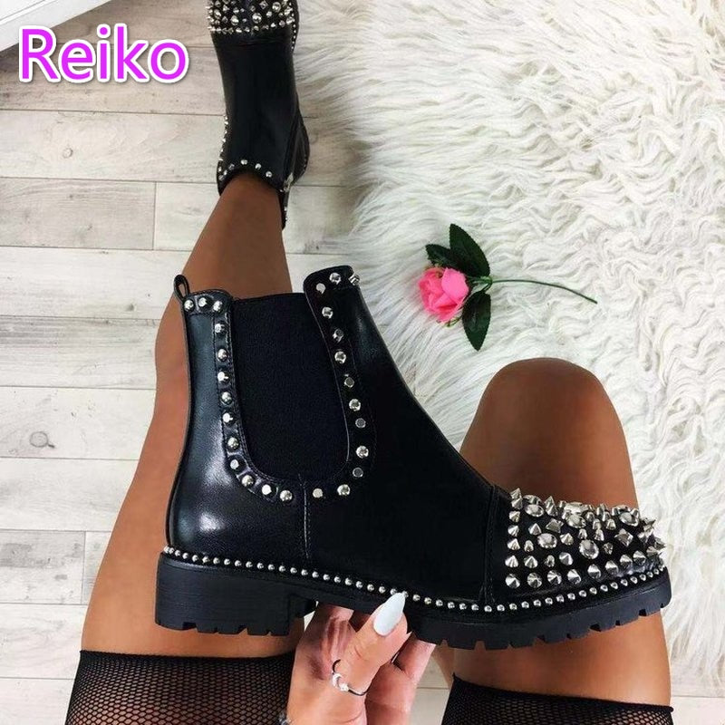 2021 women's new punk style autumn women's boots pointed toe low-heel rivet rhinestone Chelsea fashion boots women's shoes