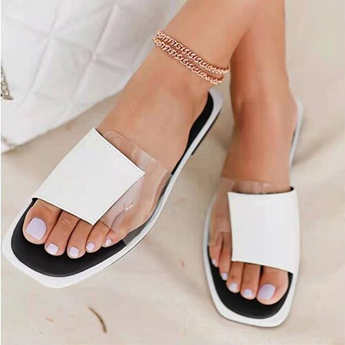 2021 Women's Slippers Summer Female Transparent Patchwork Flats Casual Sandals Ladies Color Matching Outdoor Beach Flat Slides