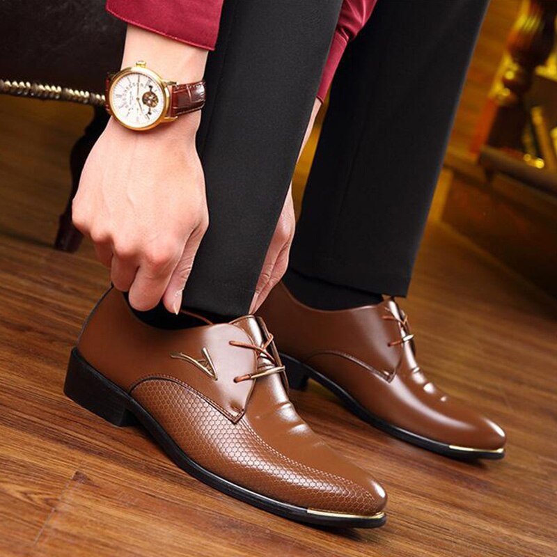2021Mens Leather Shoes Fashion Pointed Toe Lace Up Men's Business Casual Shoes Oxfords Dress Shoes Big Size 39-48