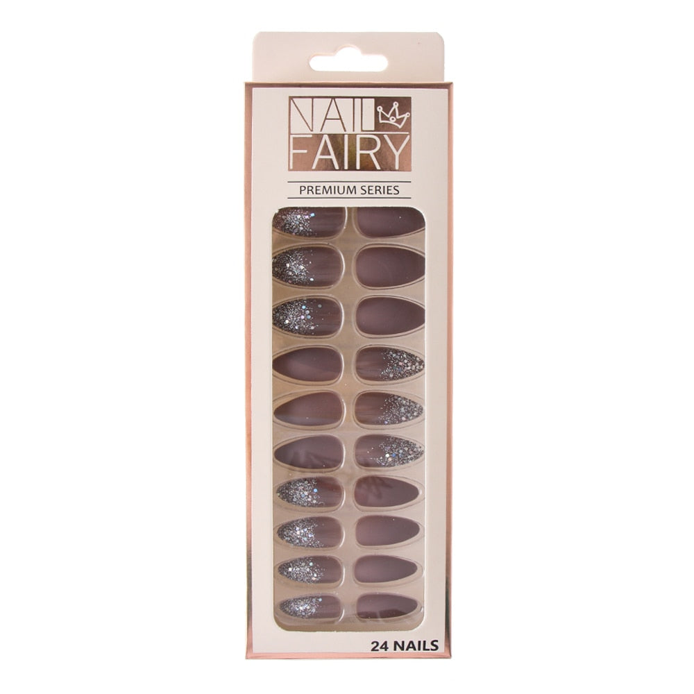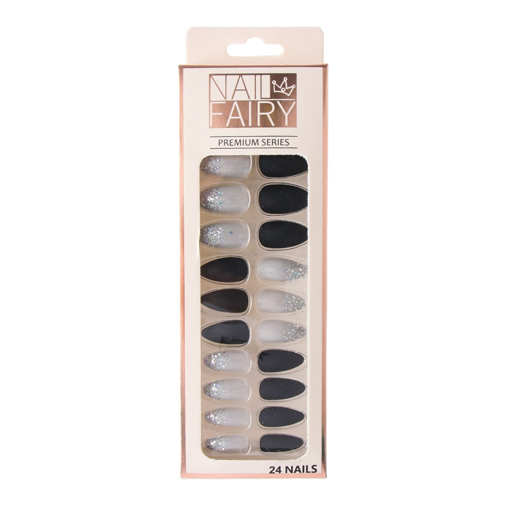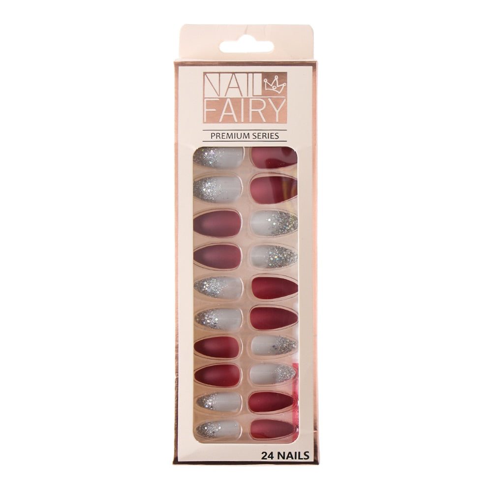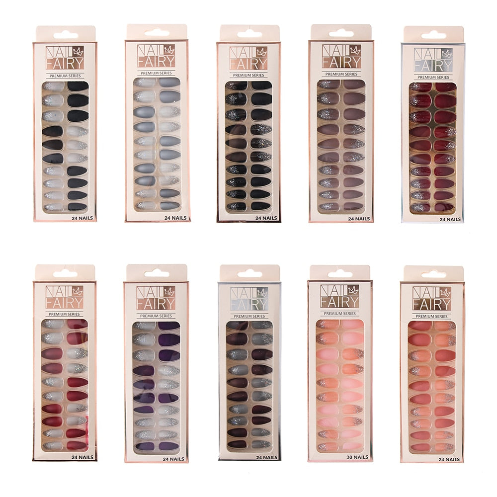 24/Pcs Reusable False Nail Tips Set Full Cover Shiny Matte Nail Tips With Designs Press On Nails Art Extension Fingernail Tips