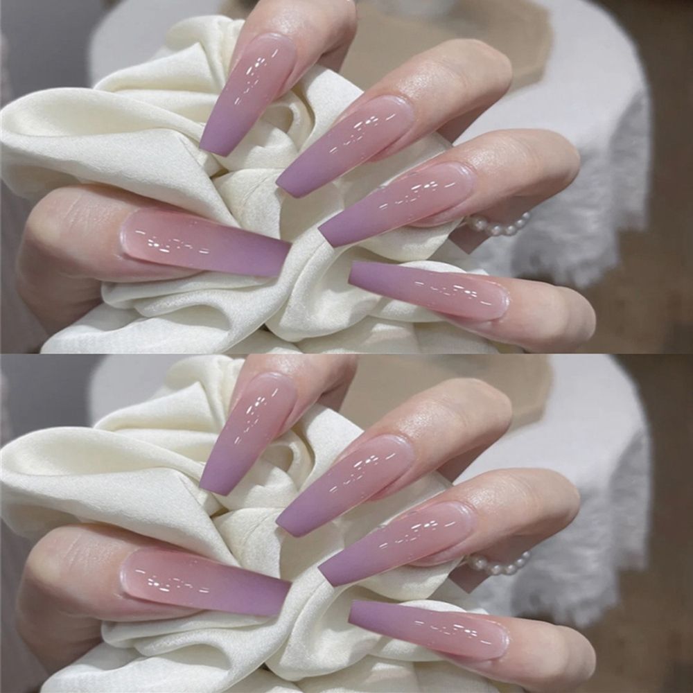 24pcs/Box Detachable Amber Ballerina False Nails Wearable Artificial Fake Nails Full Cover Nail Tips With Press Glue Manicure