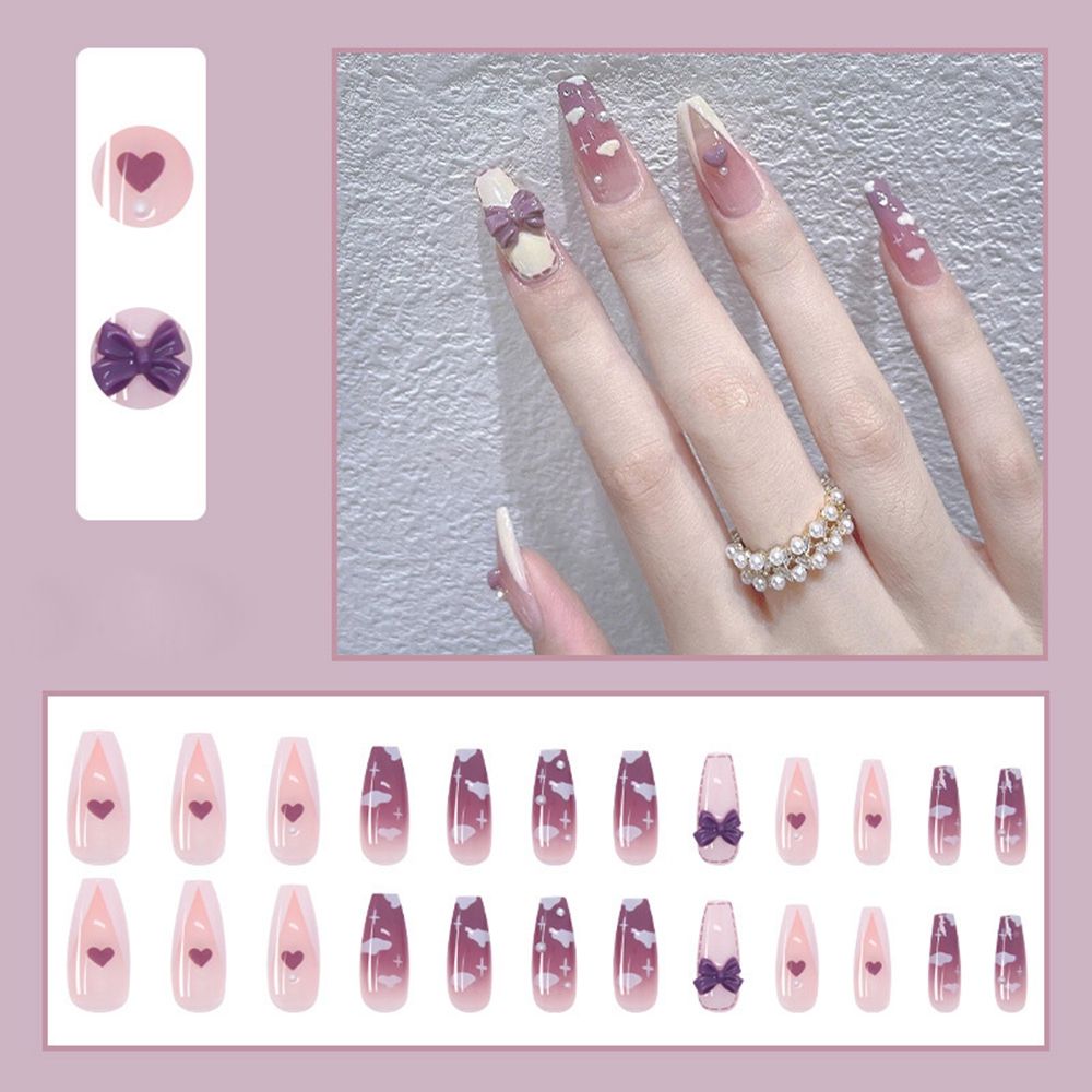 24Pcs Detachable Butterfly Purple False Nails Ballerina Wearable Coffin Full Cover Fake Nail Tips Press On Nails Manicure Tool