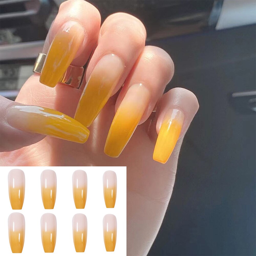 24pcs Press On Nails Gradient Yellow Coffin Artificial False Nails Ballerina Fake Nails Full Cover Nail Tips Acrylic Fingernail