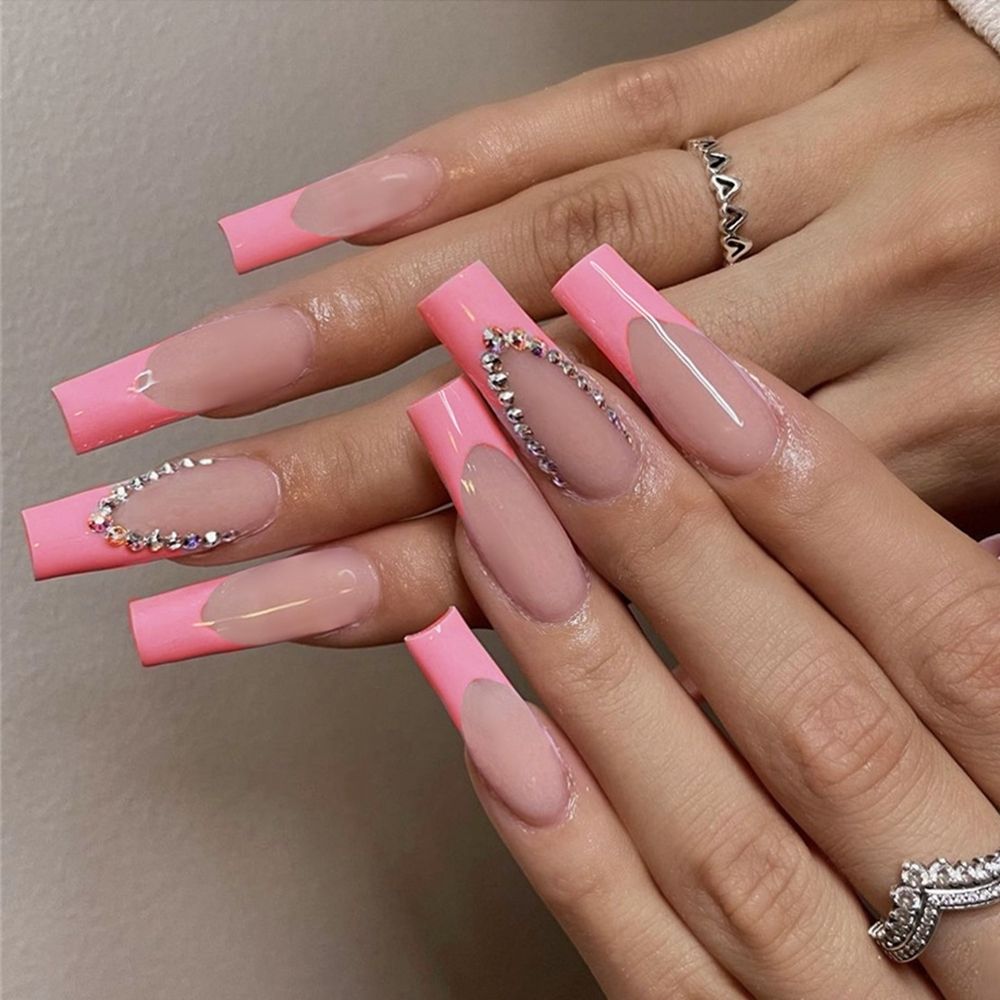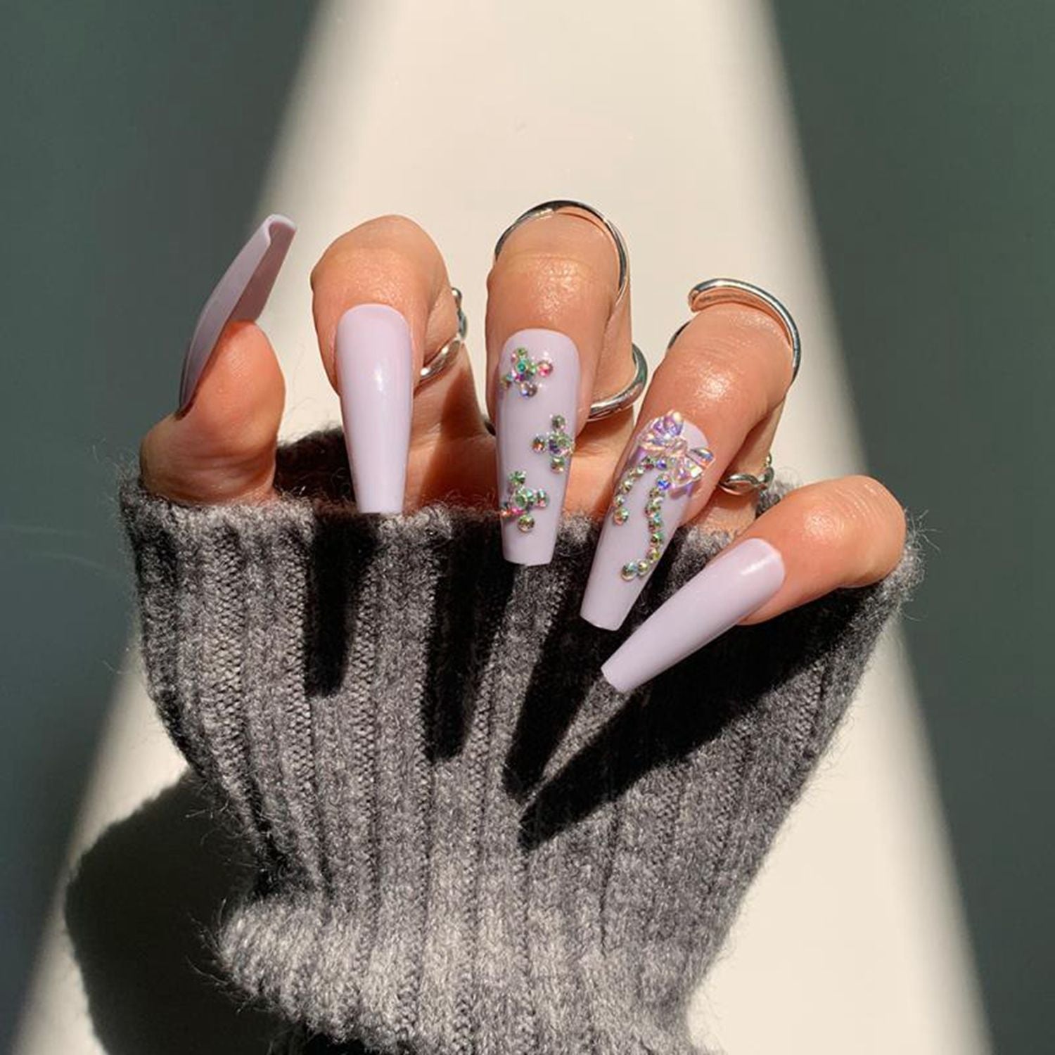 24pcs Rhinestone Long Ballerina False Nails With Designs Wearable Coffin Fake Nails Full Cover Press On Nail Tips DIY Accessory
