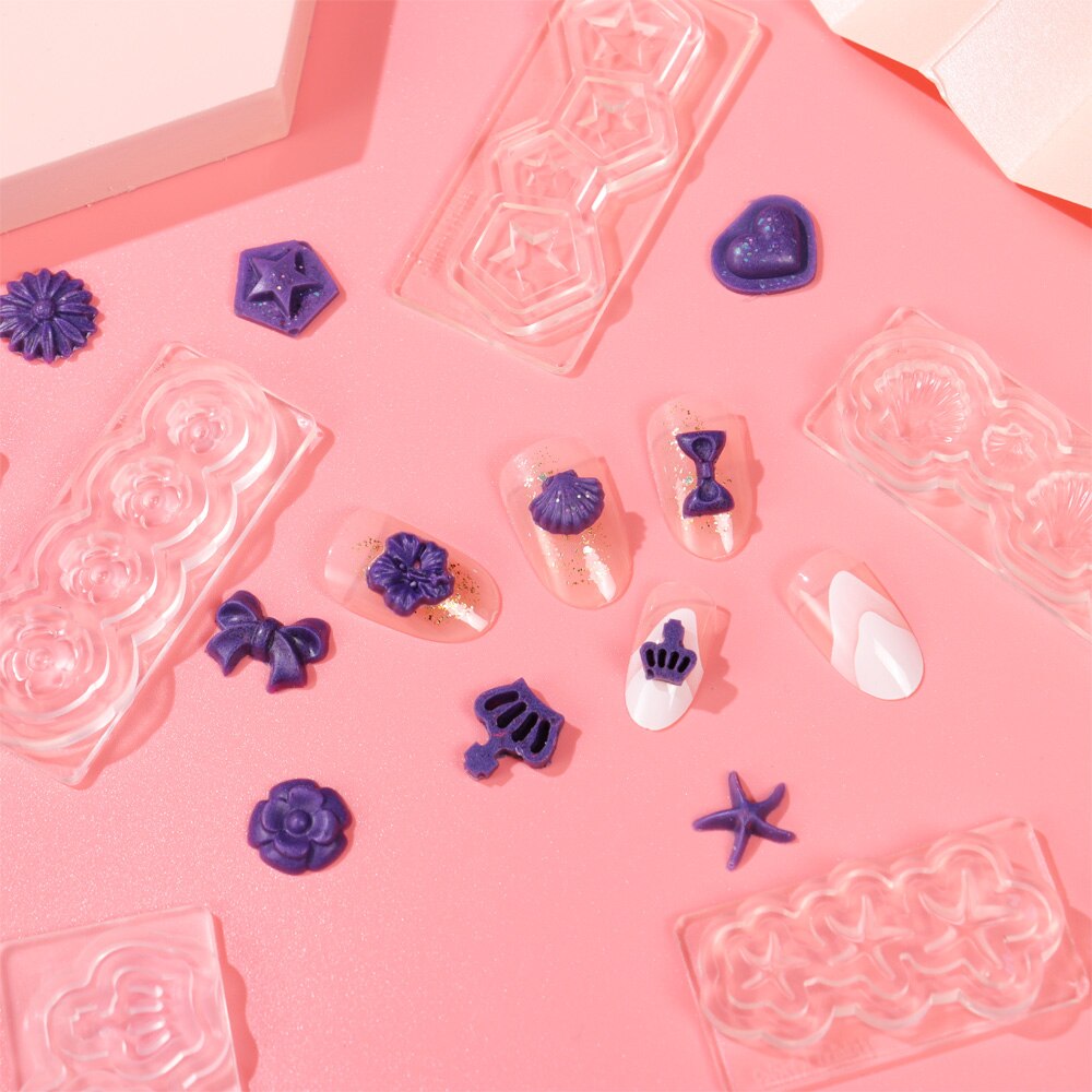 3D Nail Art Silicone Carved Mold Stone Heart Star Crystal Design Decor DIY Acrylic Nails Silicon Gel Template Nail Art Tool