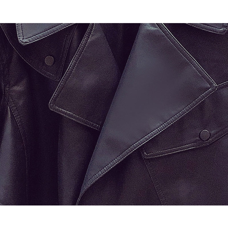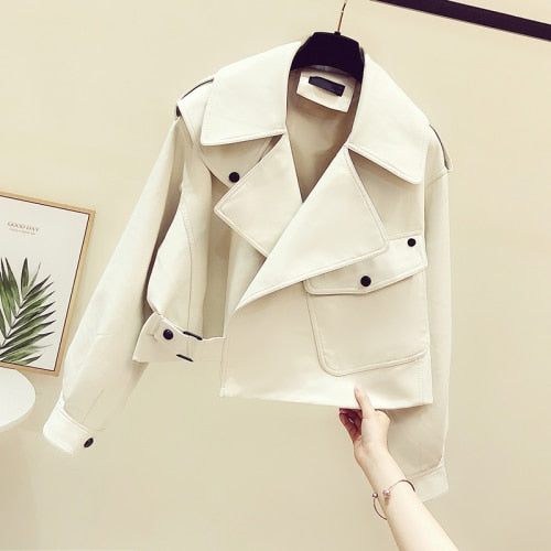 Ailegogo Spring Women Short Pu Leather Jacket Moto Biker Oversized Turndown Collar Black Coat Vogue Lady Faux Leather Outwear