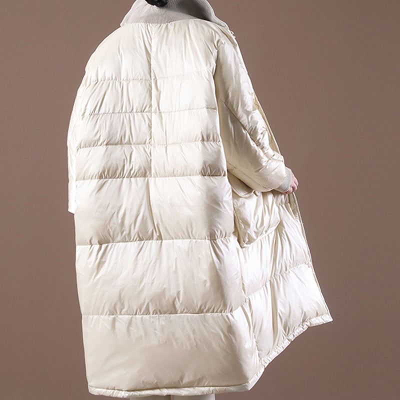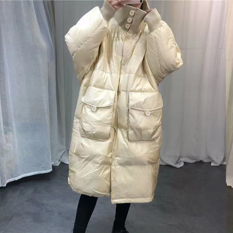 Ailegogo Winter Women Thick Warm 90% White Duck Down Long Parka Casual Female Pocket Zipper Snow Outwear Loose Down Jackets