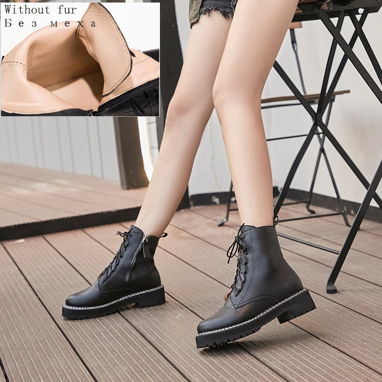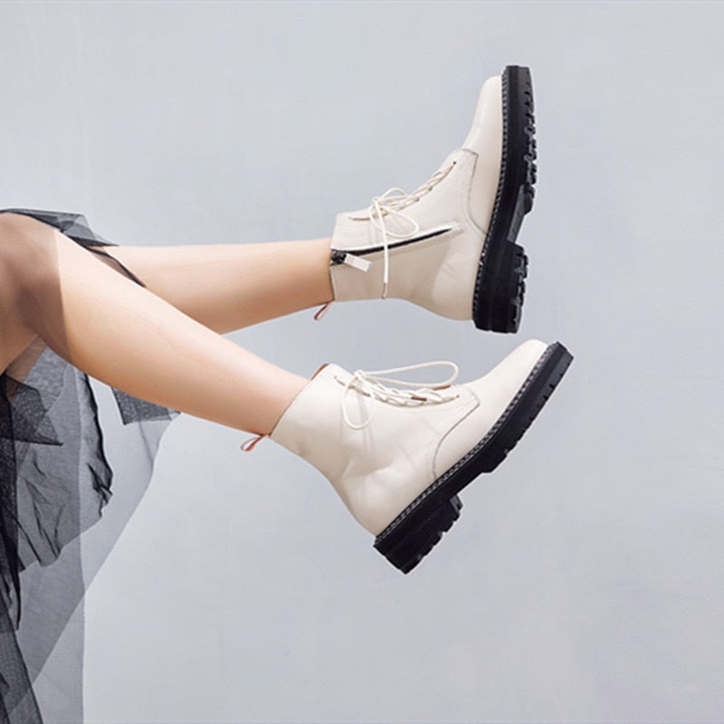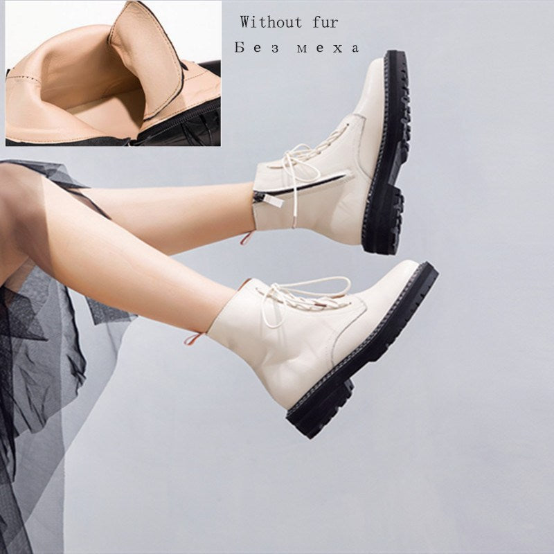AIYUQI Boots Female 2021 Genuine Leather Women Booties Lace Up White winter women shoes Non-slip girl Martin boots