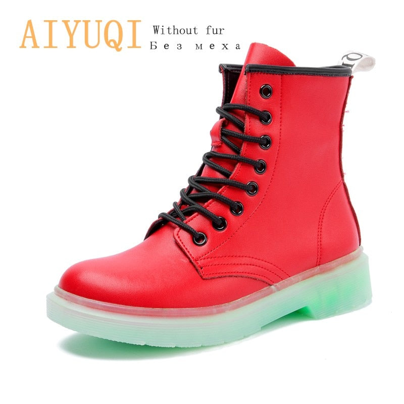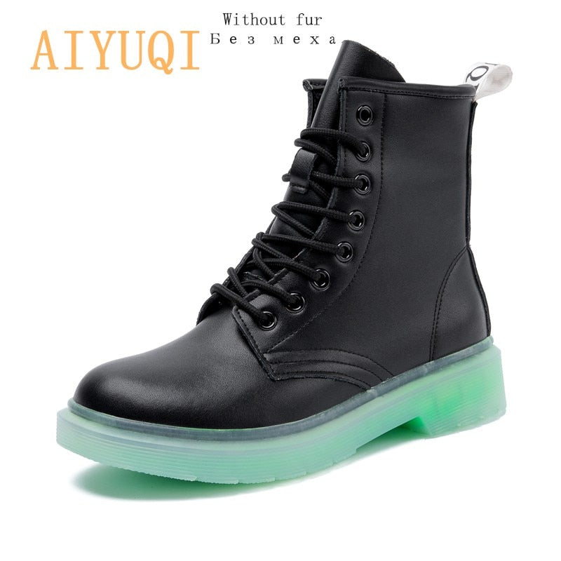 AIYUQI Female Martin shoes Women Winter Boots Shoes Fur 2021 New Genuine Leather Fashion Ankle Boots Student Flat