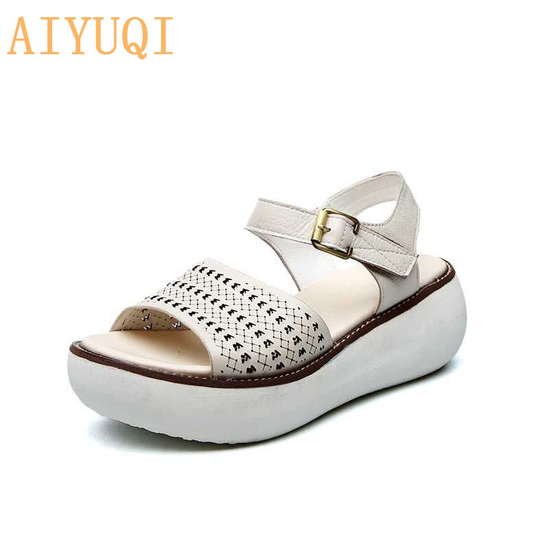 AIYUQI Women sandals platform wedges shoes 2021 new sandals women genuine leather open toe retro hollow women's summer footwear