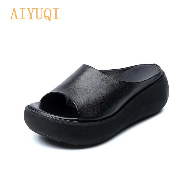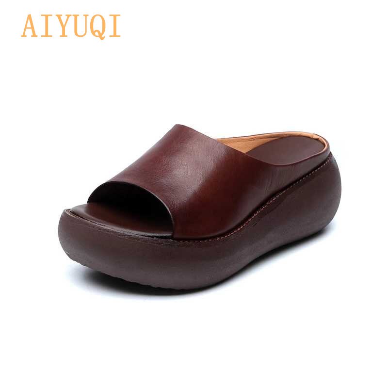 AIYUQI Women Slippers Sandals 2021 New Summer Sandals Women Natural Genuine Leather Platform Casual Retro Female Slippers