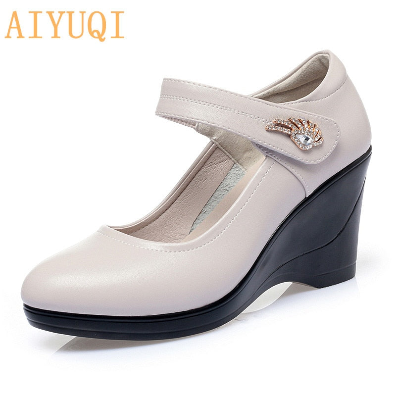 AIYUQI Women's Shoes Platform Wedge 2021 New Women's Autumn Shoes High Heel Fashion Mid-aged Shallow Mouth Mother Shoes