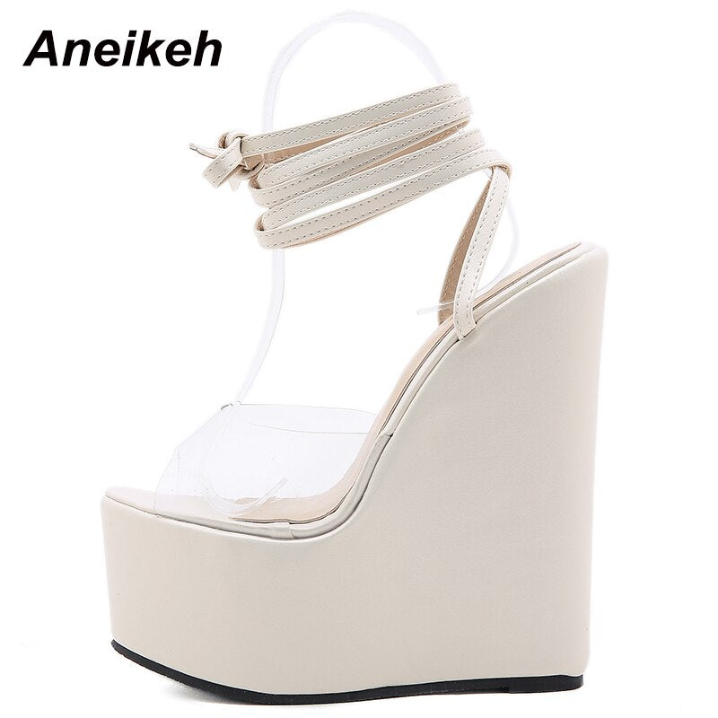 Aneikeh NEW Sexy Femmes Chaussures Wedges Strap Sandales Summer Peep Toe High Heel Fashion Ladies Gladiator Party Women Shoes