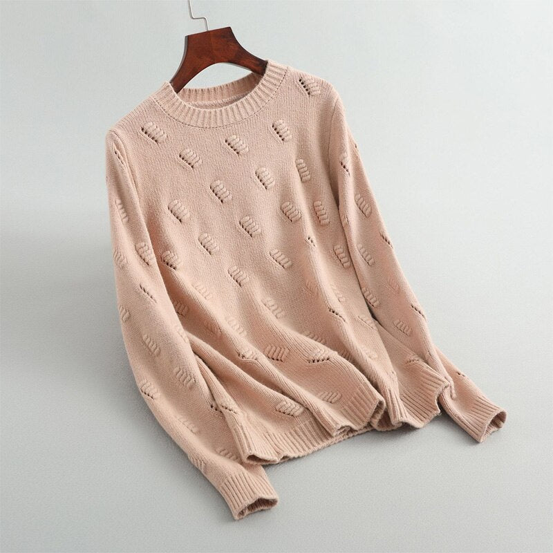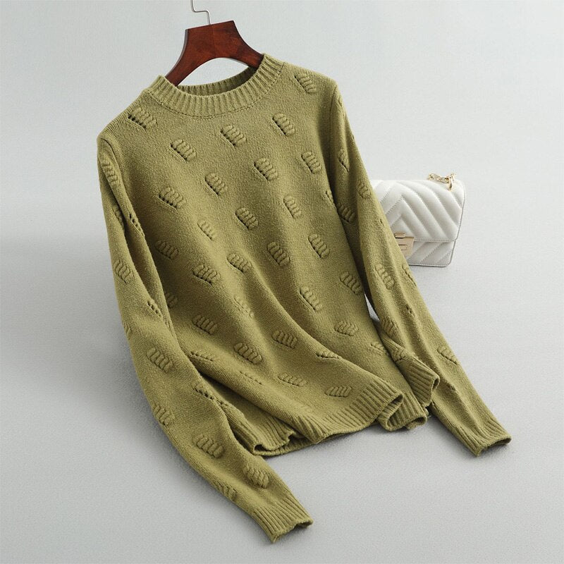 Autumn and winter women's sweater casual solid color round neck long sleeve sweater