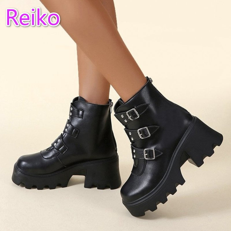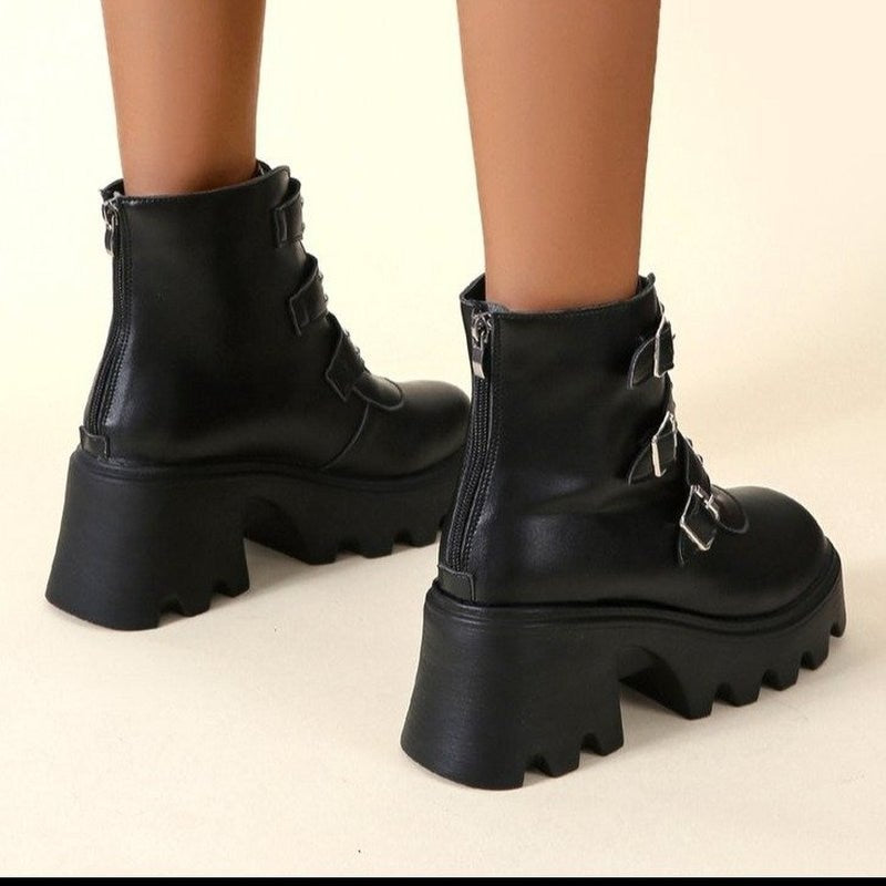 Autumn/winter belt buckle punk platform short boots female British style fashion trifle rider boots side zipper Martin boots