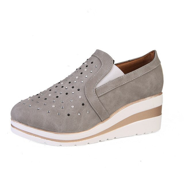 Autumn Women Platform Wedges Vulcanized Ankle Boots Height Increasing Female High Heel Shoes Ladies Fashion Plus Size 35-43