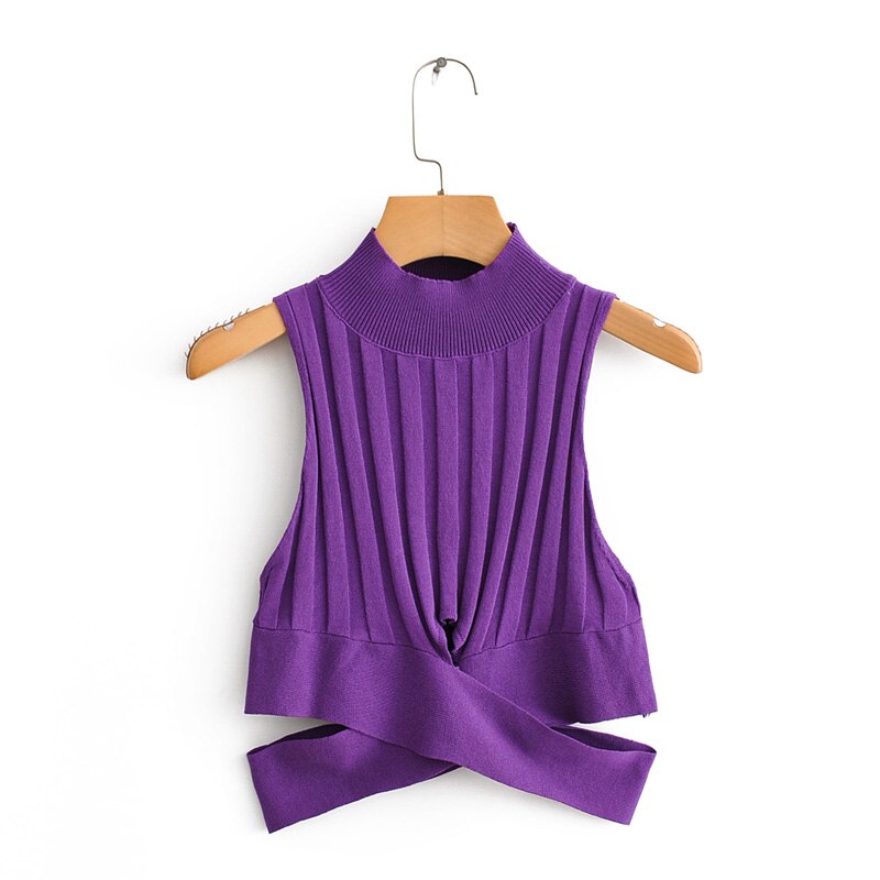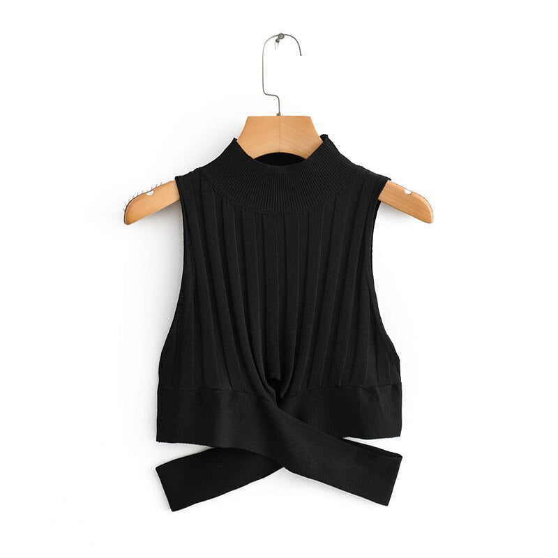 Autumn women's sweater casual solid color high collar sleeveless Slim irregular short sweater