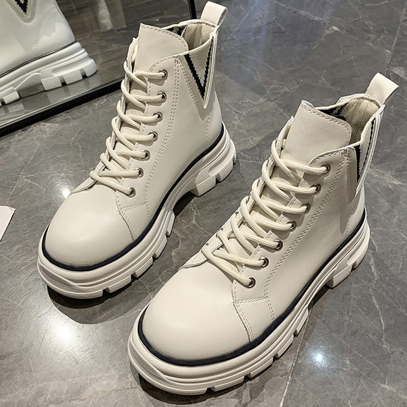 Black White Platform Boots Women 2021 Fashion Chunky Ankle Boots For Women Shoes Designer Punk PU Leather Combat Boots Female