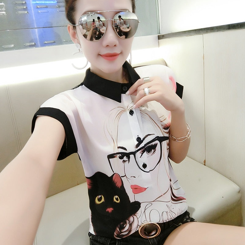 Blusas De Gasa Mujer Summer Women Blouse Short Sleeve Shirts Casual Chiffon Blouse Women Printed White Blouses and Tops 4475