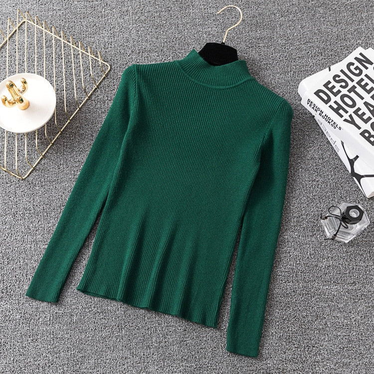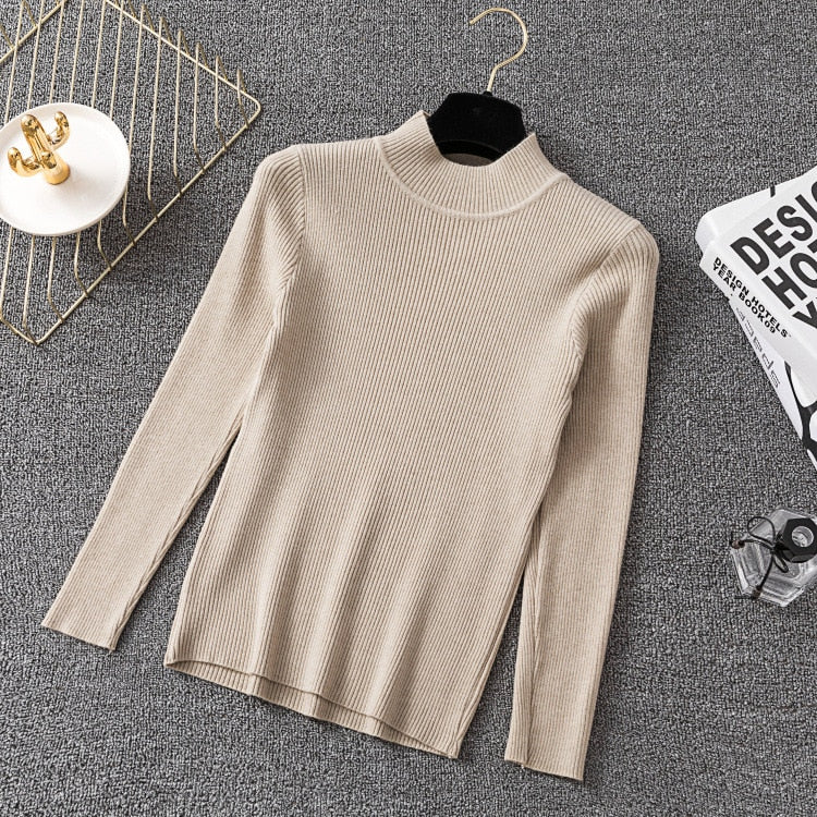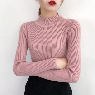 Bonjean Knitted Jumper Autumn Winter Tops Turtleneck Pullovers Casual Sweaters Women Shirt Long Sleeve Short Slim Sweater Girls