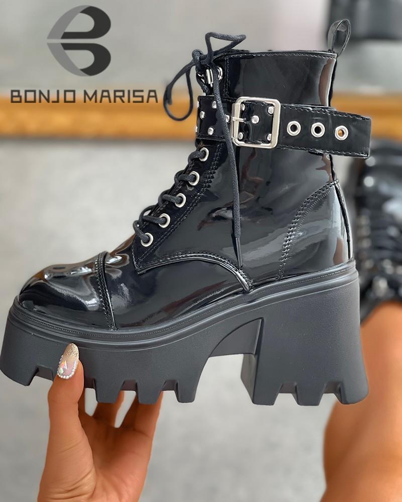 BONJOMARISA Big Size 43 Platform Chunky Heel Zipper Goth Motorcycle Boots Women Black Fashion Punk Cool Combat Ladies Shoes