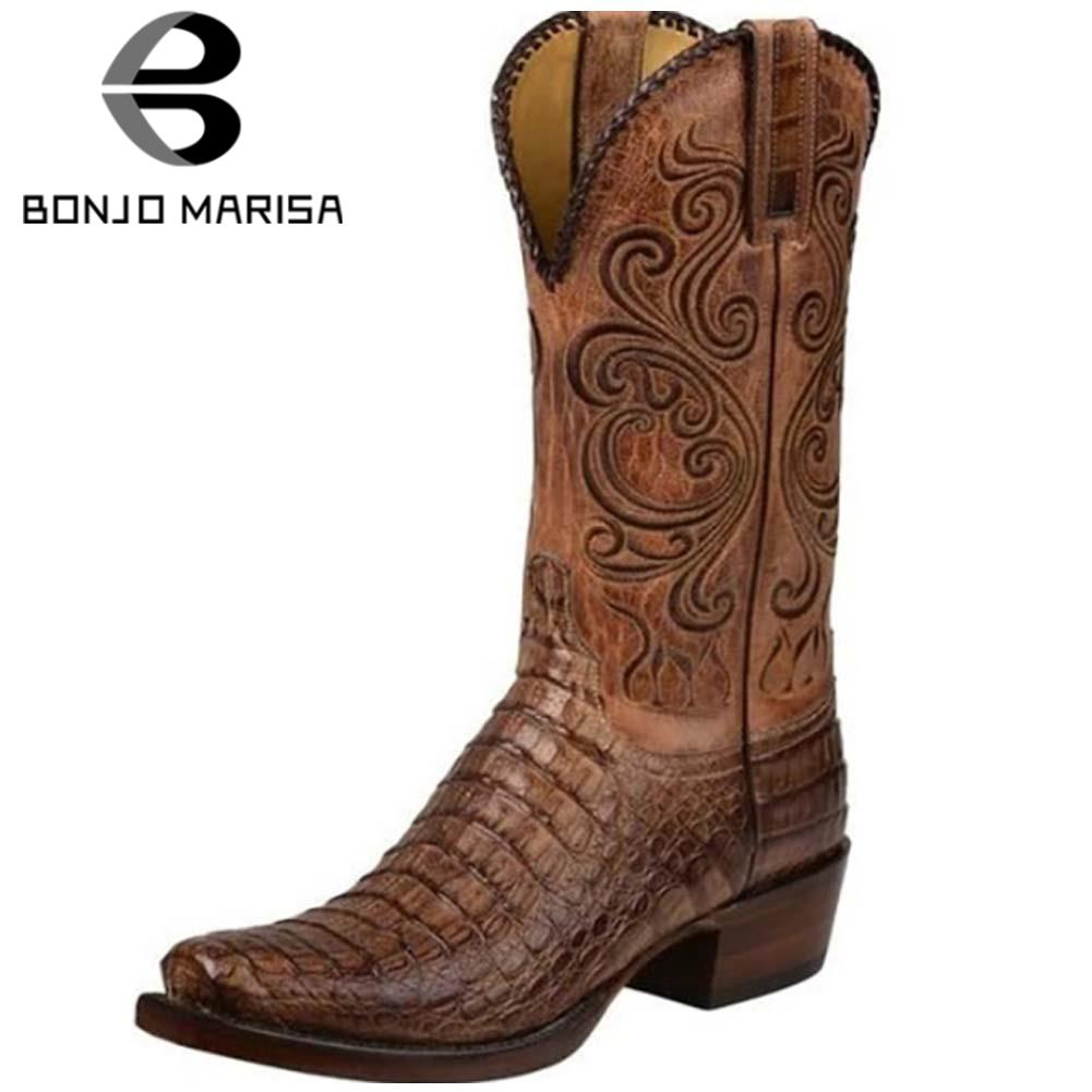 BONJOMARISA Classic Pointed Toe Chunky Heel High Quality Women Western Boots Cowboy Walking Casual Embroidery Ladies Shoes