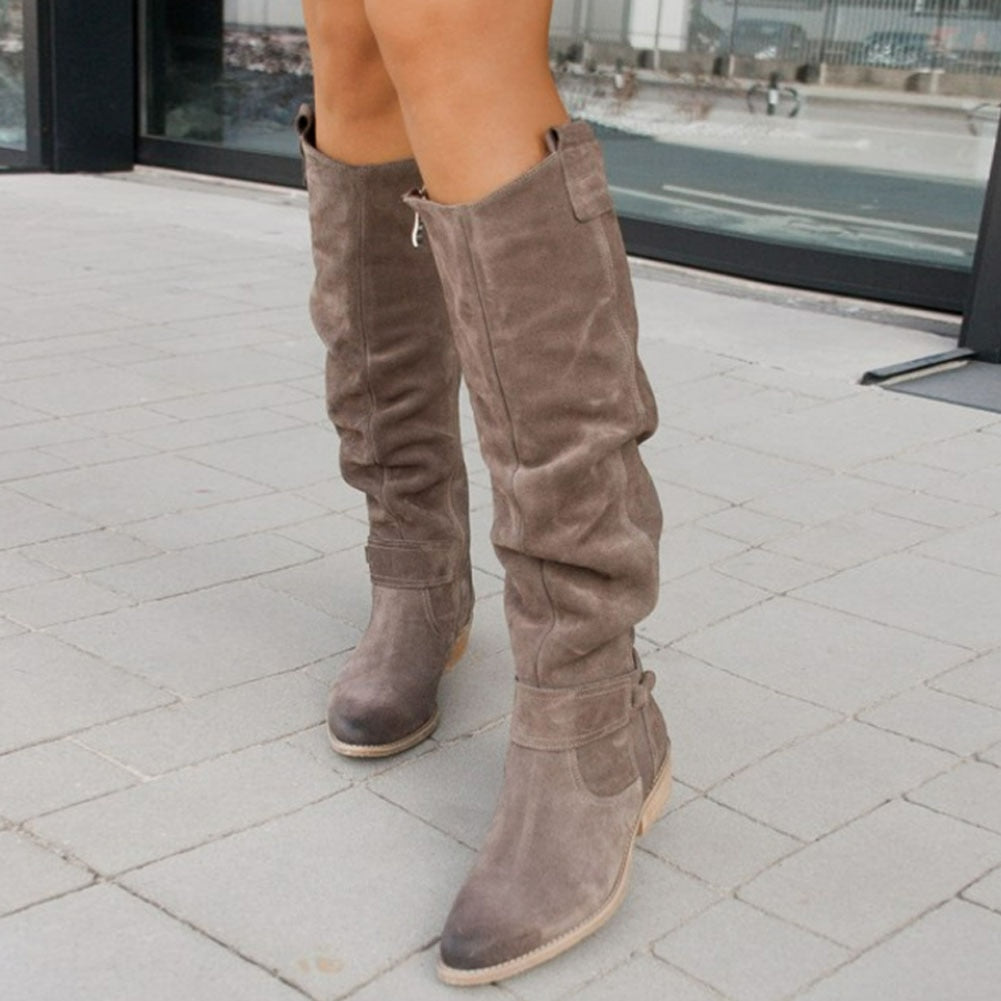 BONJOMARISA On Sale Top Quality Female Cowgirls Zipper Ridding Boots For Women Chunky Heels Fashion Vintage Casual Walking Shoes