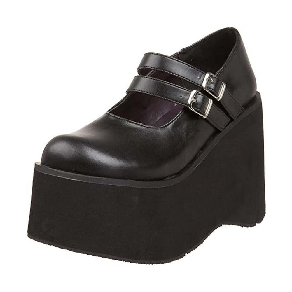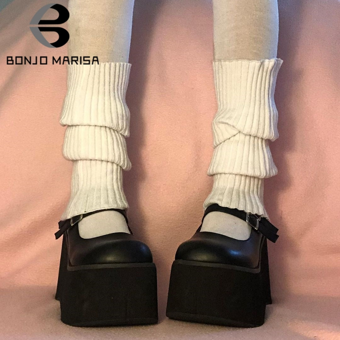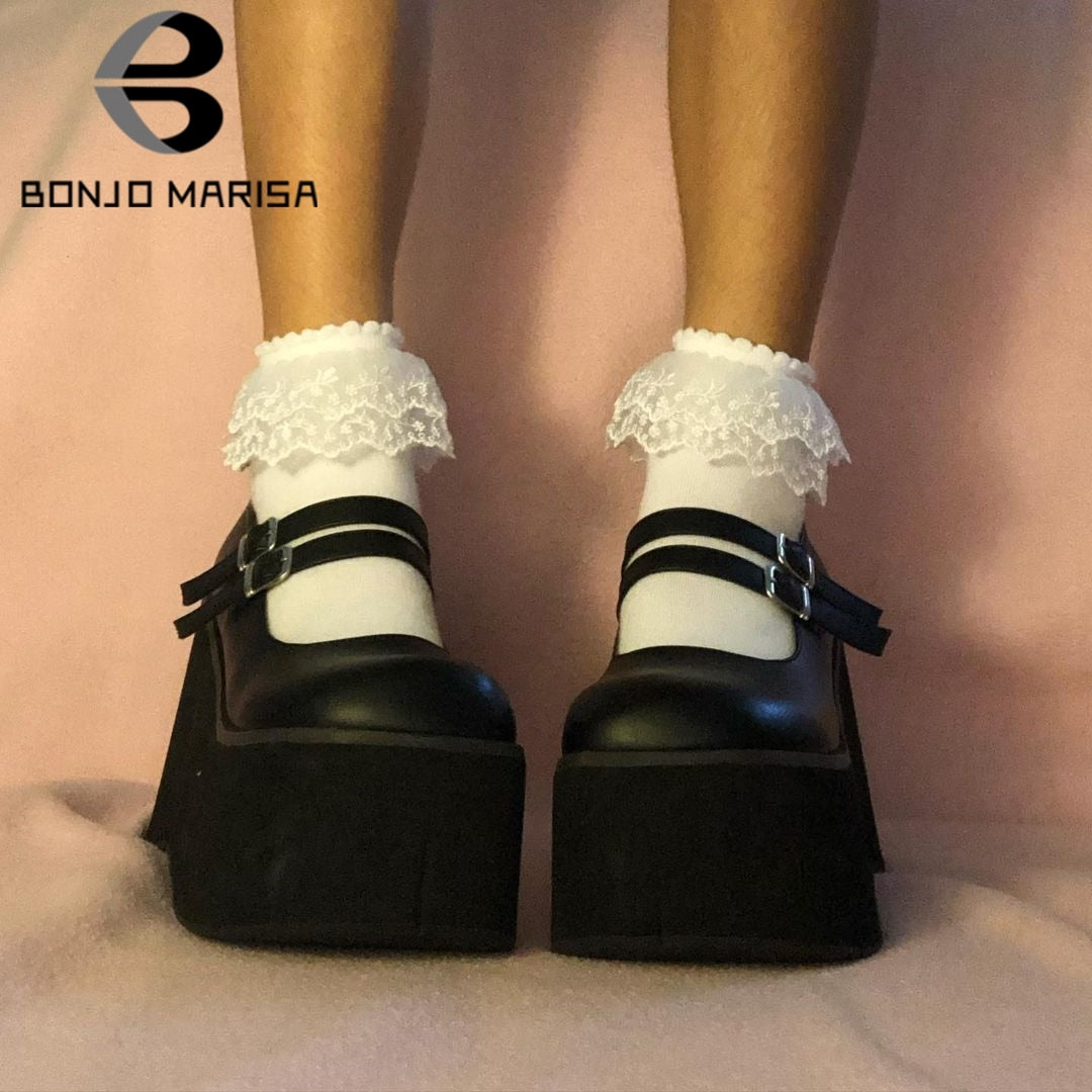 BONJOMARISA The Big Size 43 Girls Pumps Solid Buckle Platform Marry Janes Pumps Women Lolita Thick Bottom Gothic Shoes Woman