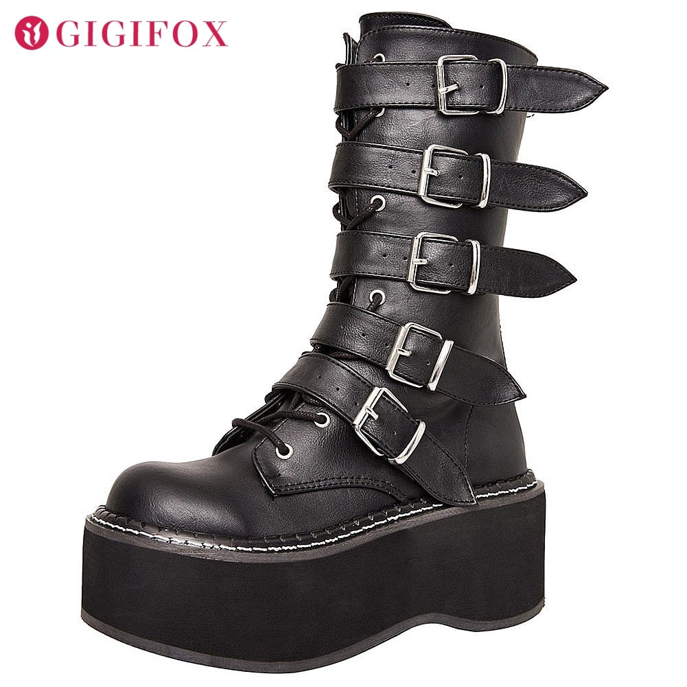 Brand 2021 Large Sizes 43 Platform Heels Motorcycles Boot Belt Buckles Fashion Cool Black Gothic Style Shoes Woman Boots Female