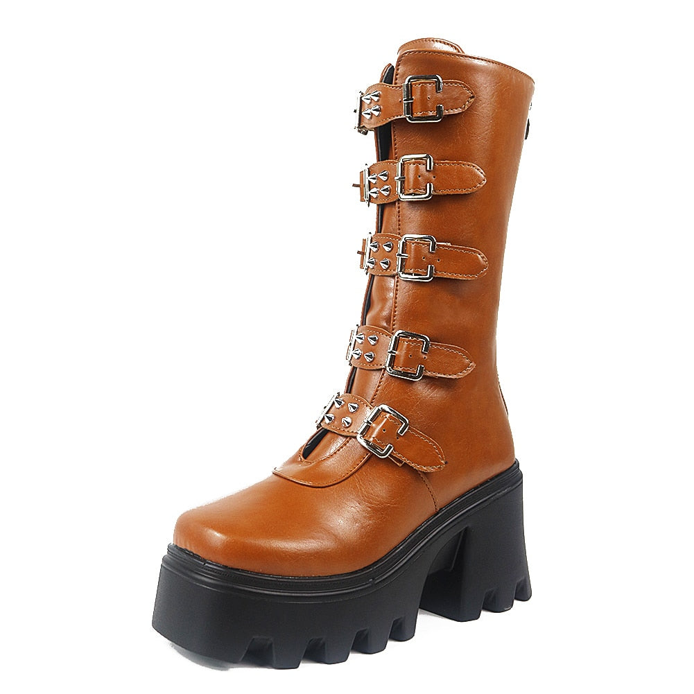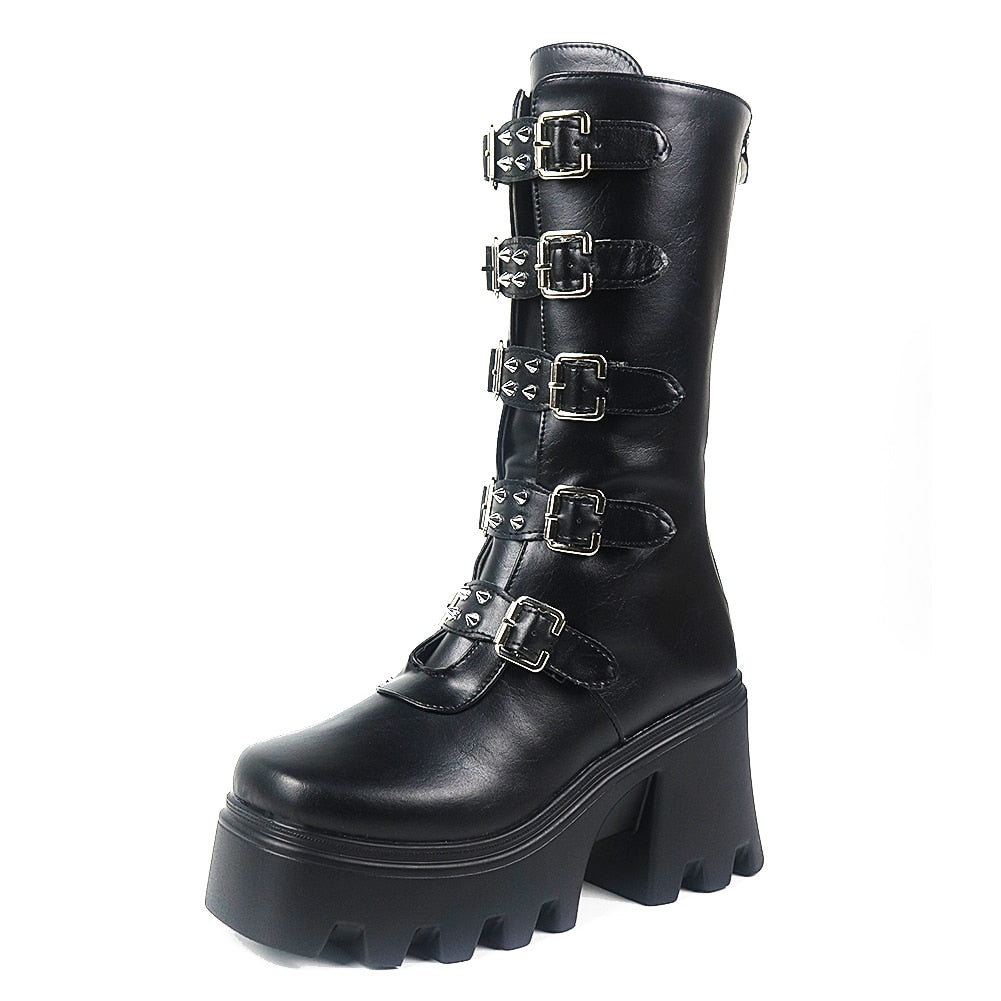 Brand New Motorcycle Boots Women Platform Chunky High Heels Rivet Buckle Women's Boots 2021 Fashio Punk Botas De Mujer
