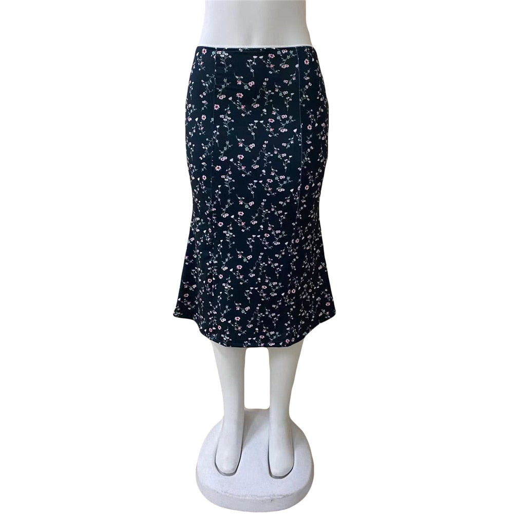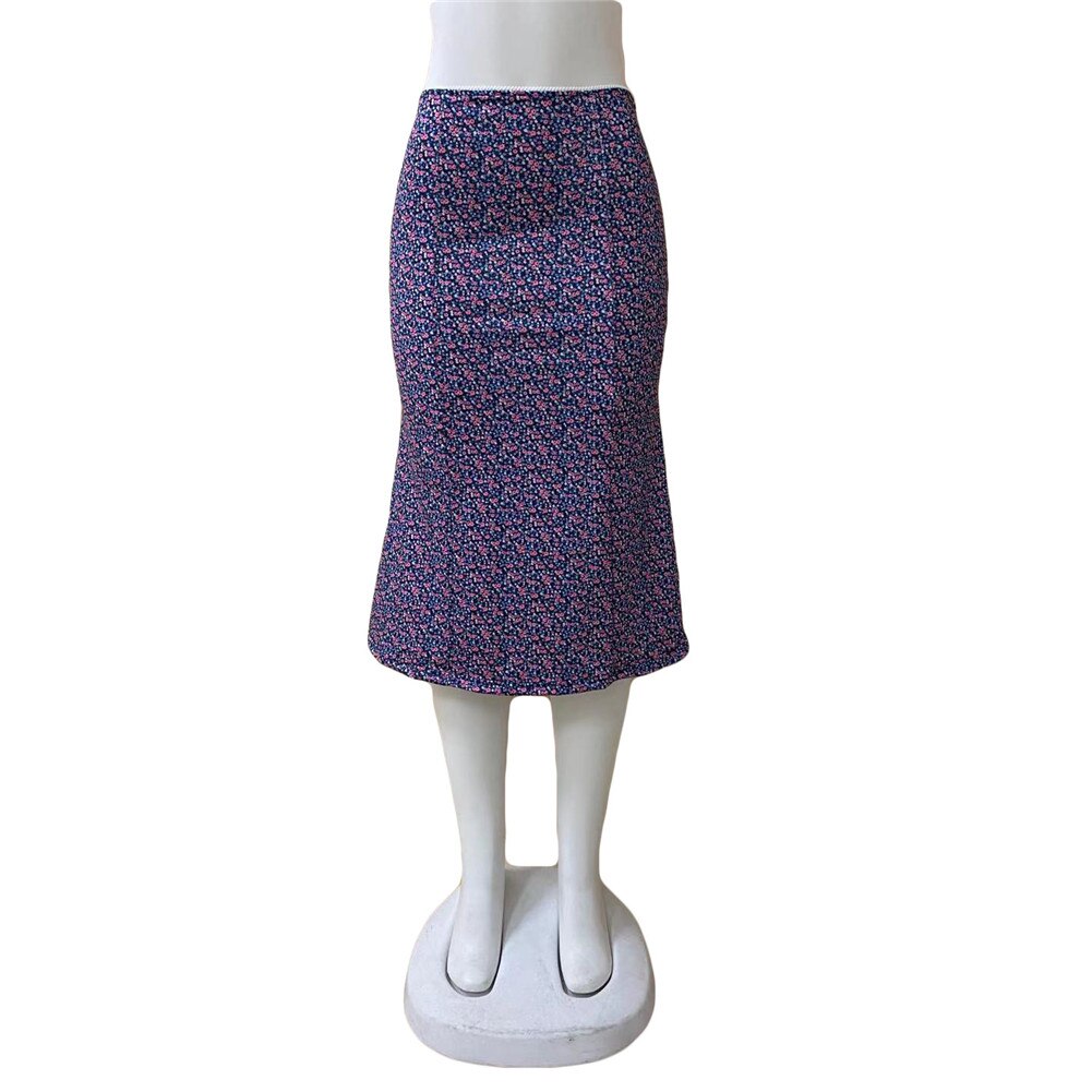 Brand New Women Midi Skirt Vintage Leisure Bohemia Floral Print Elastic Waist Med Calf Skirt for Summer Spring Vacation