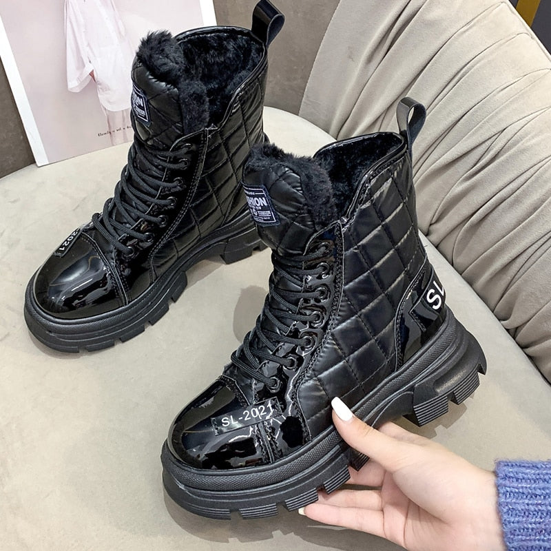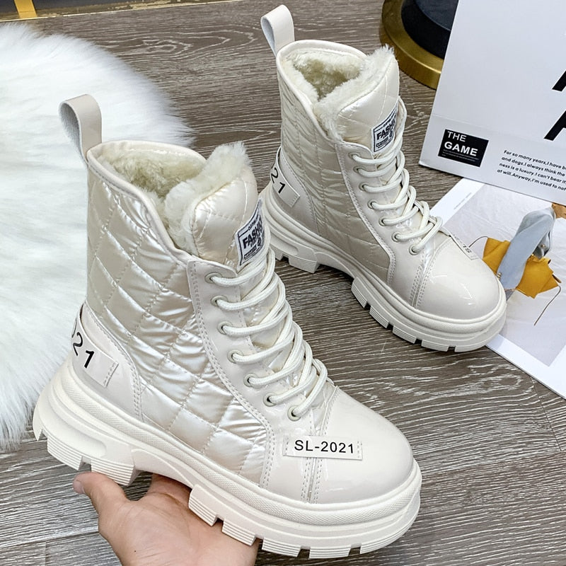 Chunky Winter Boots Women Fur Ankle Snow Boots For Women Beige Black Platform Boots 2021 New Fashion Designer Winter Sneakers